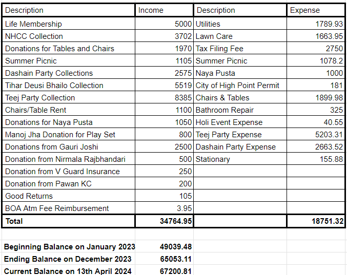 नर्थ क्यारोलिना राज्यको हाइपोइन्ट शहरमा यही अप्रिल महिनाको 13 तारीख आईतबार 2023का दिन TNCC संस्थाको साधारण सभा संस्थाकै प्राङ्गणमा सम्पन्न भयो ।